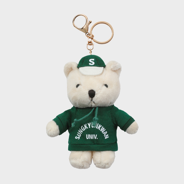 성대 후드와 모자를 쓴 귀여운 테디베어 키링입니다.